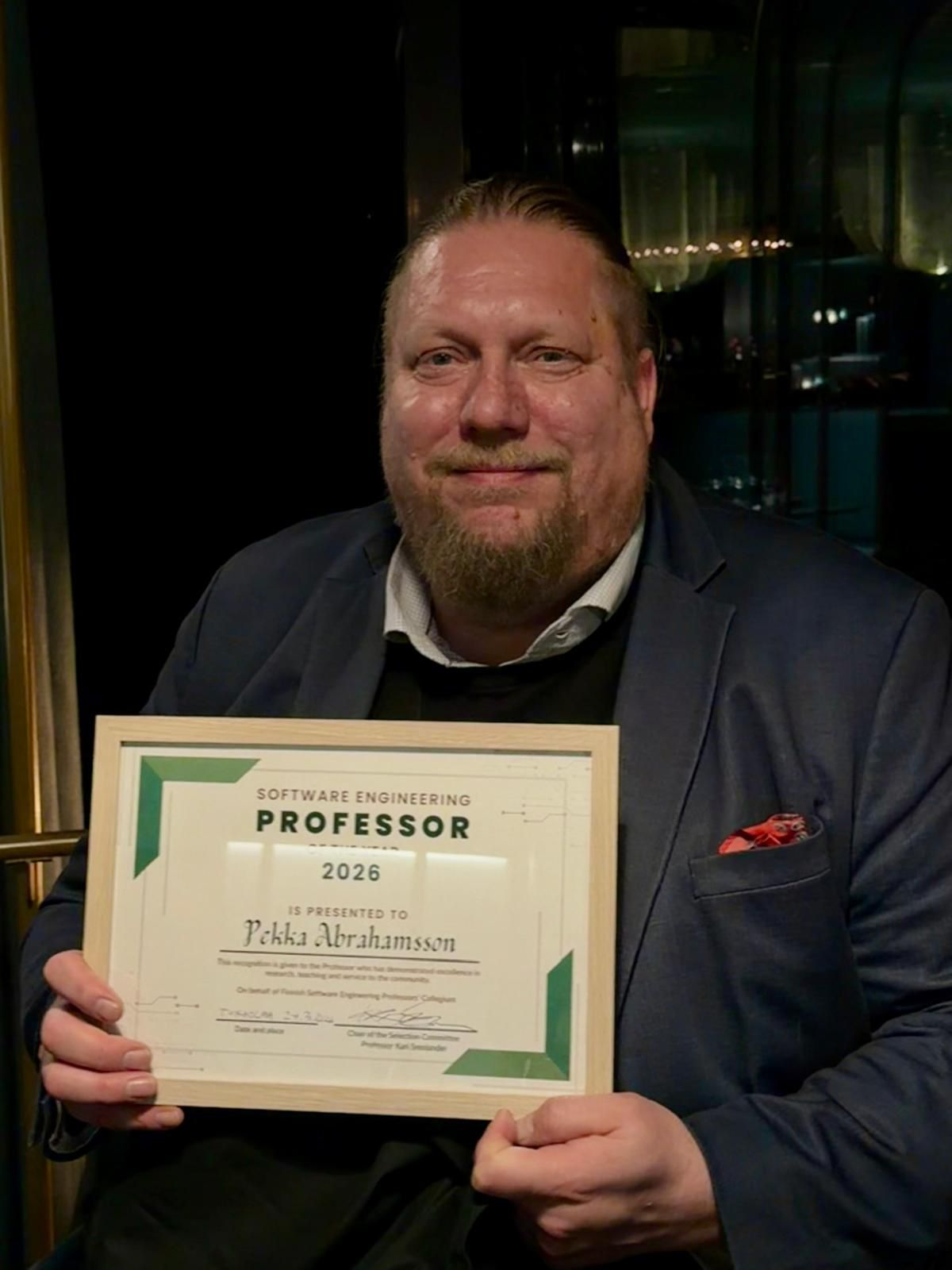 Professor Pekka Abrahamsson from Tampere University has been awarded the title Software Engineering Professor of the Year 2026. The recognition was granted by colleagues in the field and highlights sustained excellence across research, education, and community engagement.