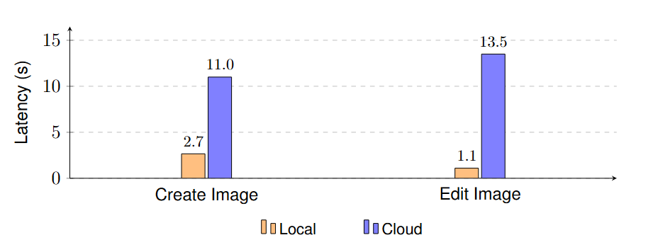 While the local system won on speed, the cloud system won on overall preference. Users felt the cloud models followed complex instructions more accurately and produced higher-quality images. They preferred waiting 11 seconds for the “right” image rather than getting an “okay” image in 2 seconds.